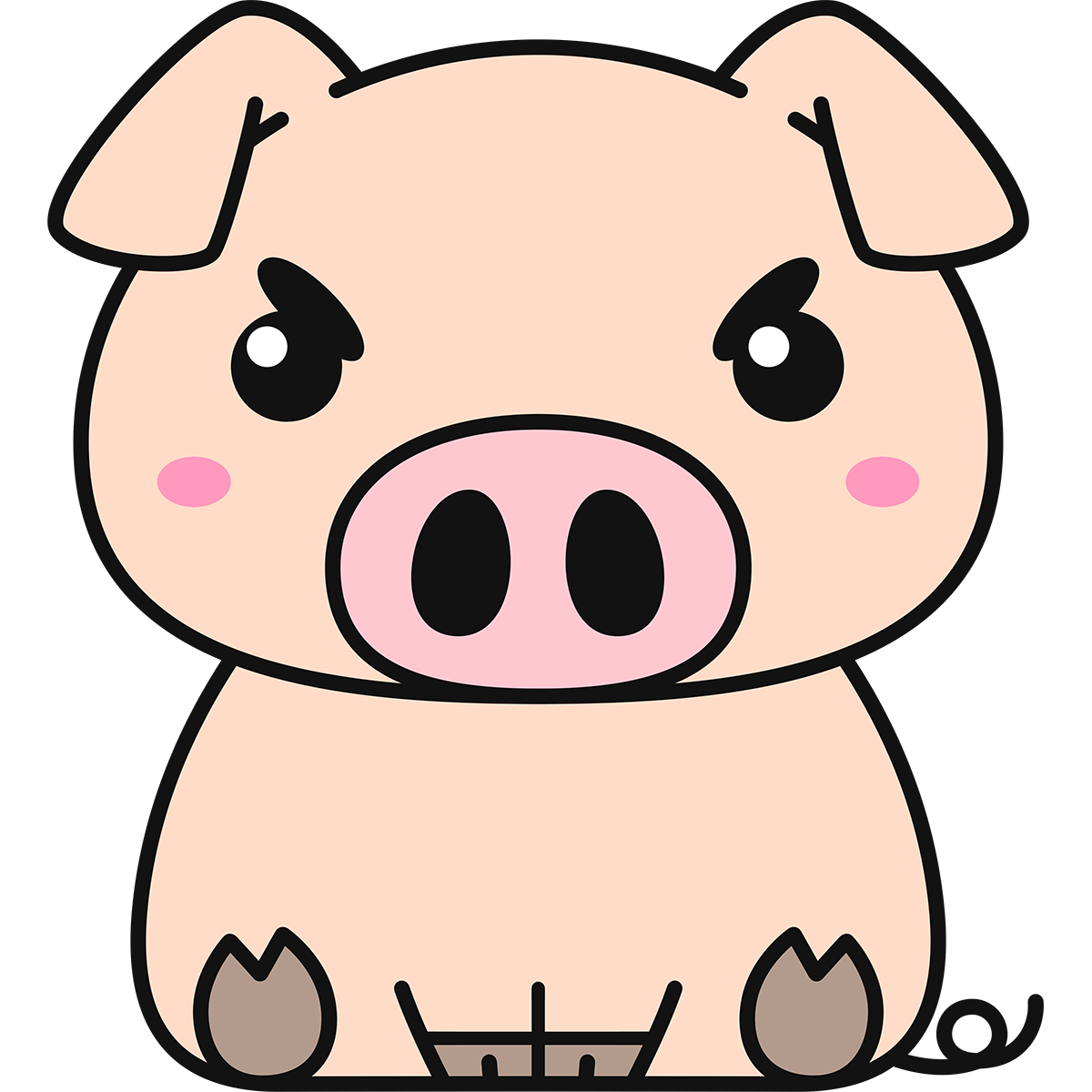座る豚