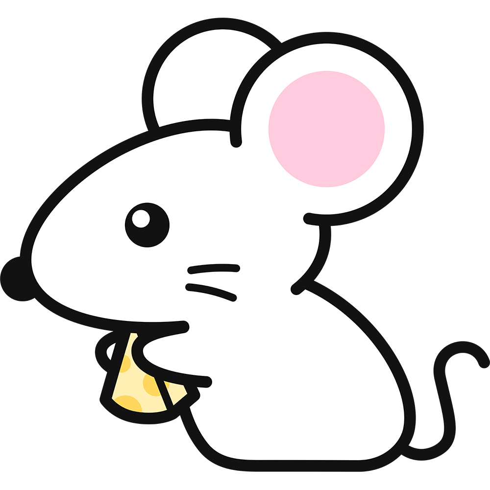 チーズを持つ白いネズミ