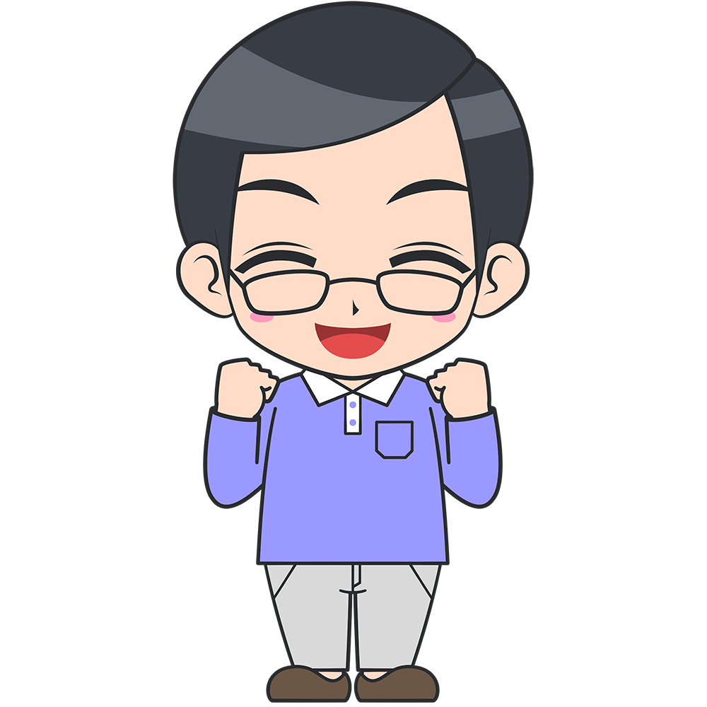 ガッツポーズをするお父さん(メガネ)
