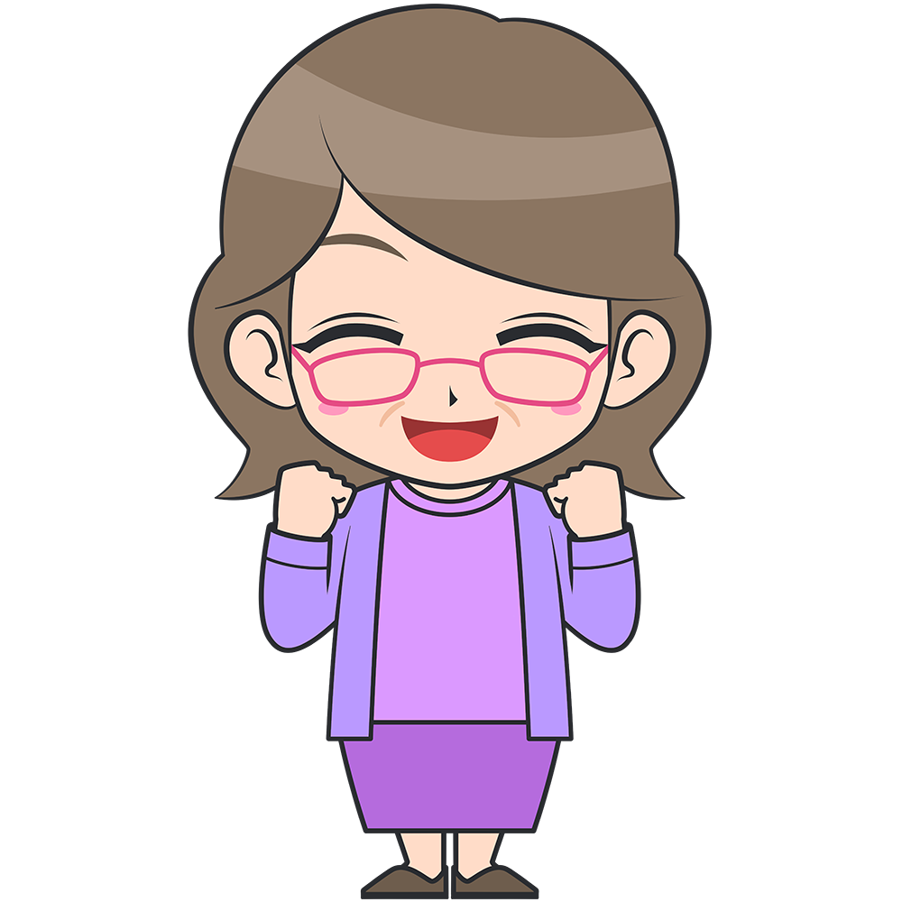 ガッツポーズをするおばさん(メガネ)