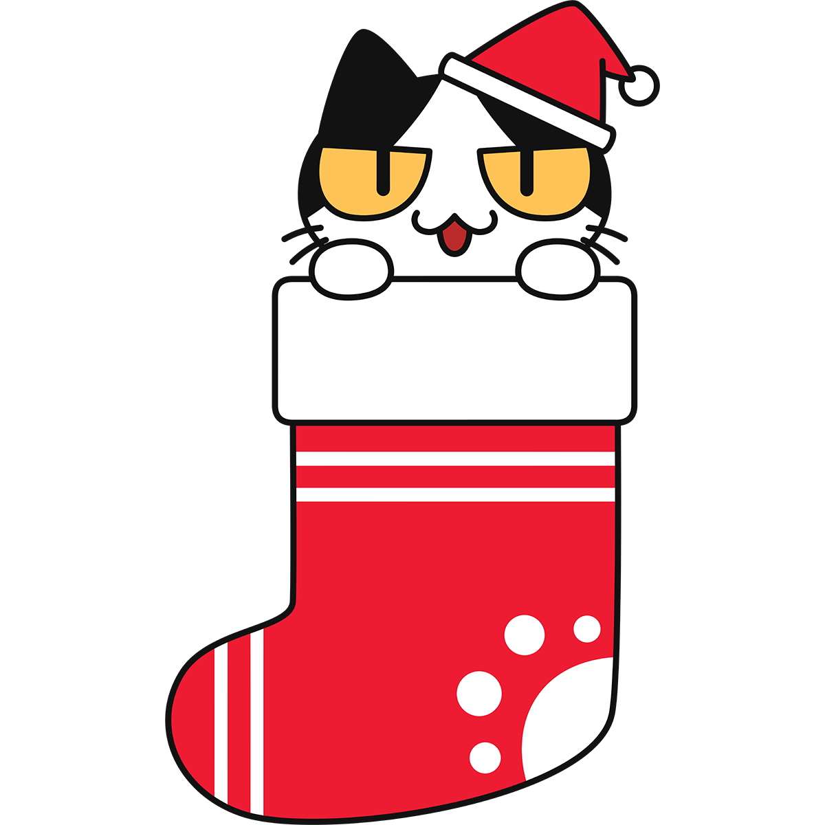 クリスマス靴下に入った猫の無料イラスト