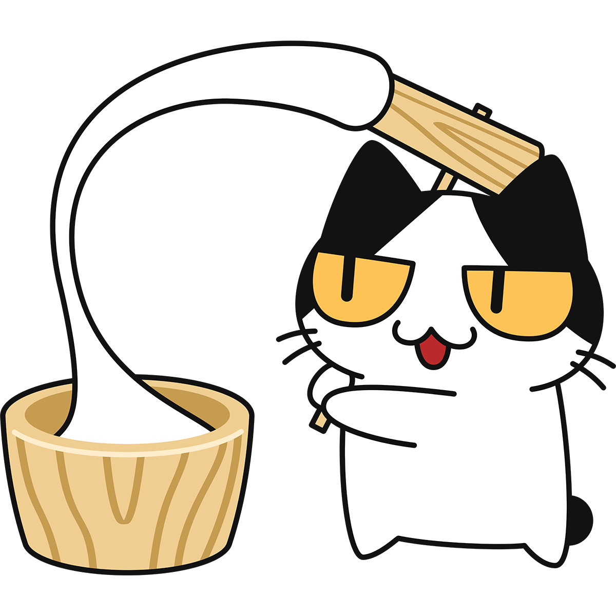 餅つきをする猫