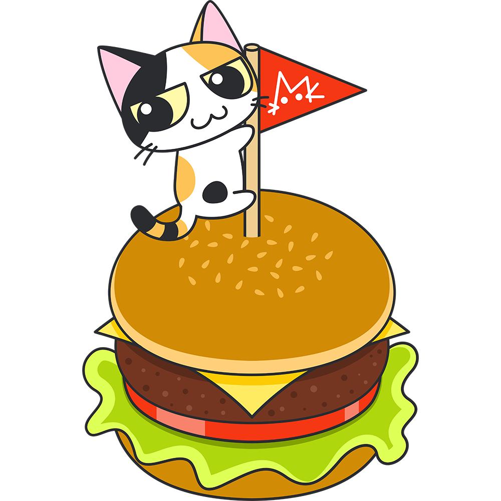 ハンバーガーと三毛猫