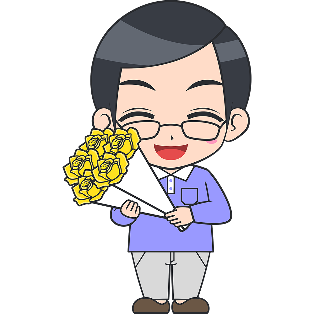 黄色いバラをもらうお父さん