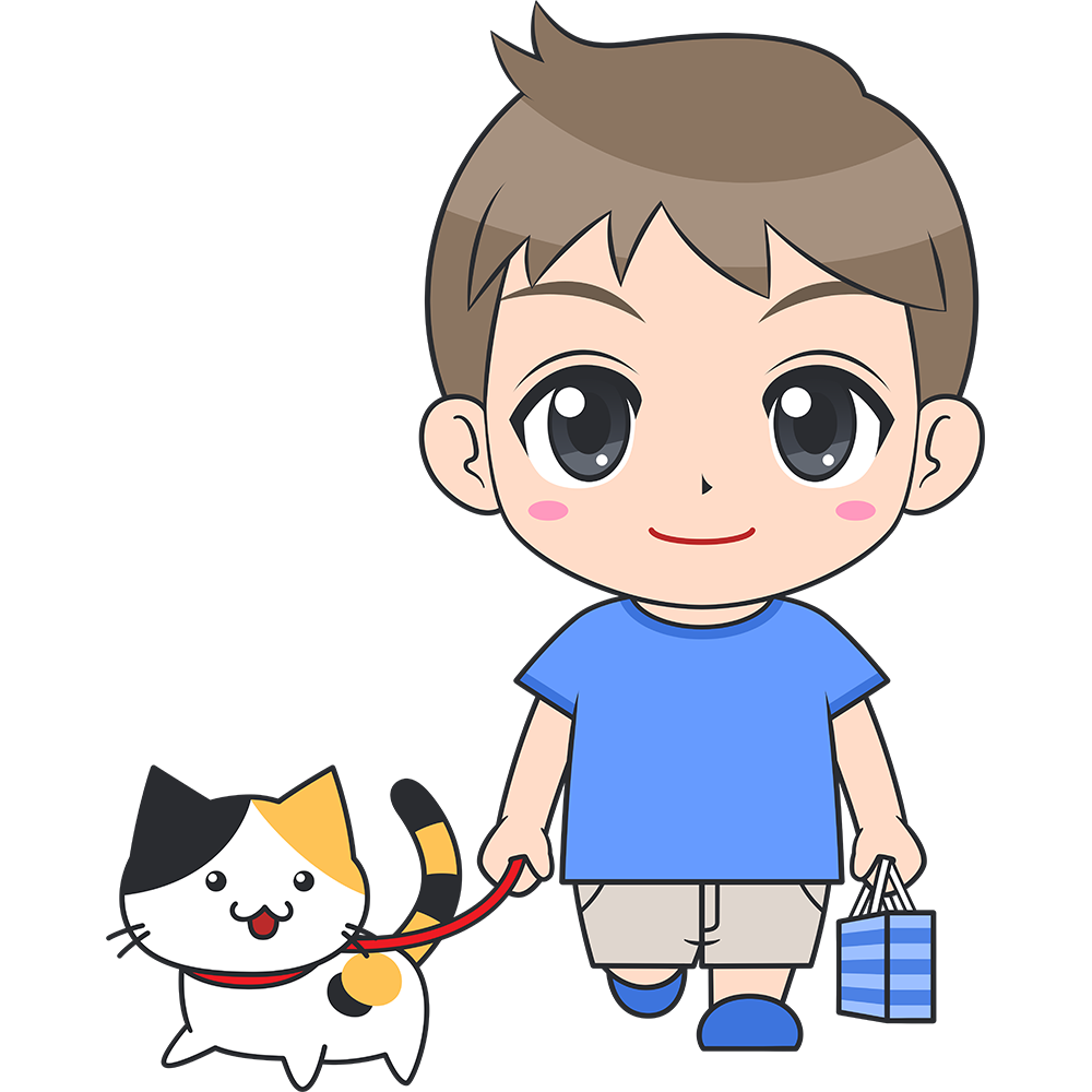 猫と散歩する男の子(子供)