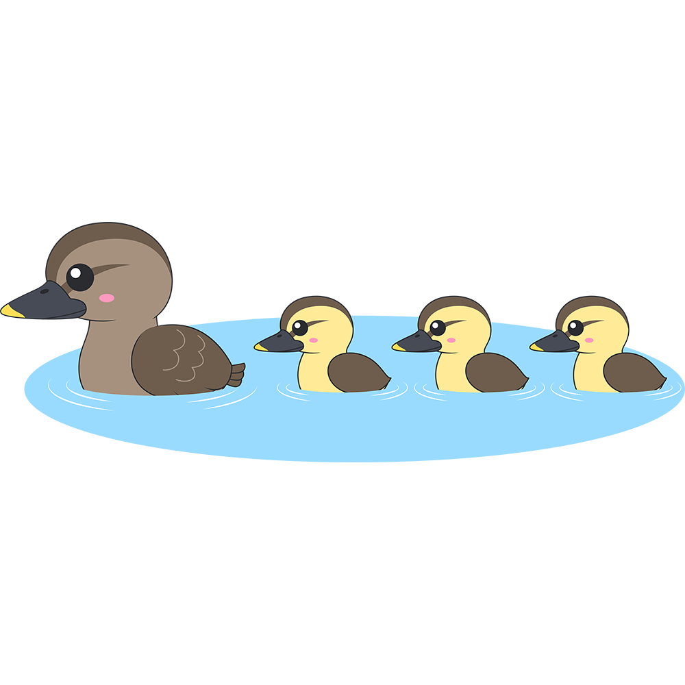 水面を泳ぐカルガモの親子