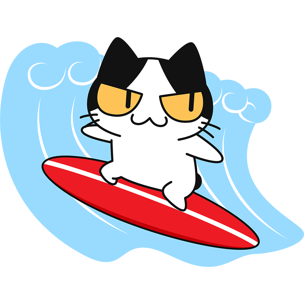 サーフィンをする猫