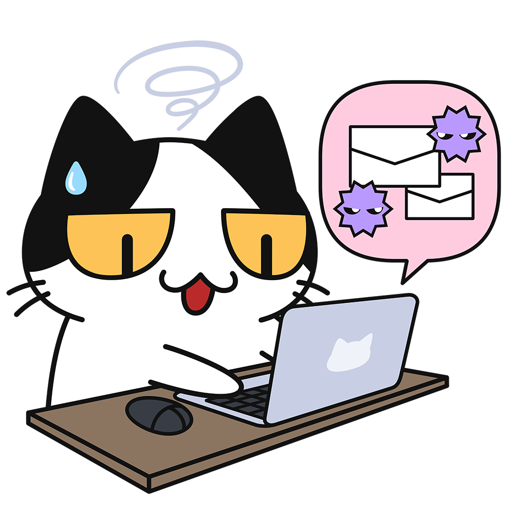 パソコンの迷惑メールに困る猫