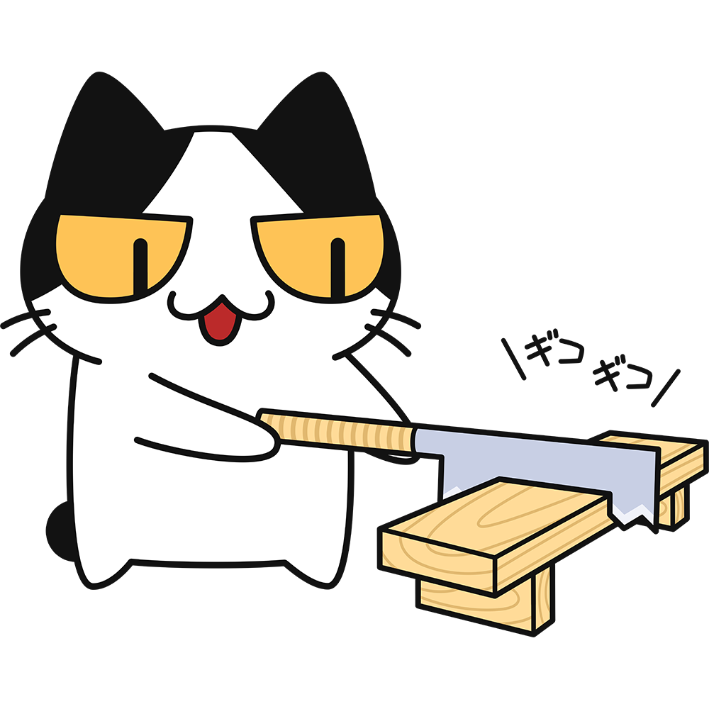 ノコギリで木を切る猫(DIY)