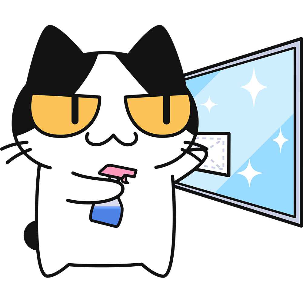 窓ふきをする猫