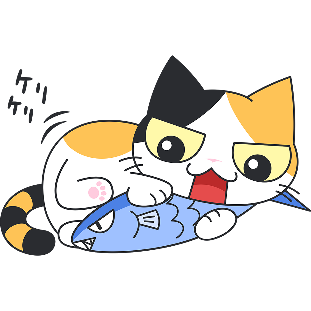 けりぐるみで遊ぶ三毛猫