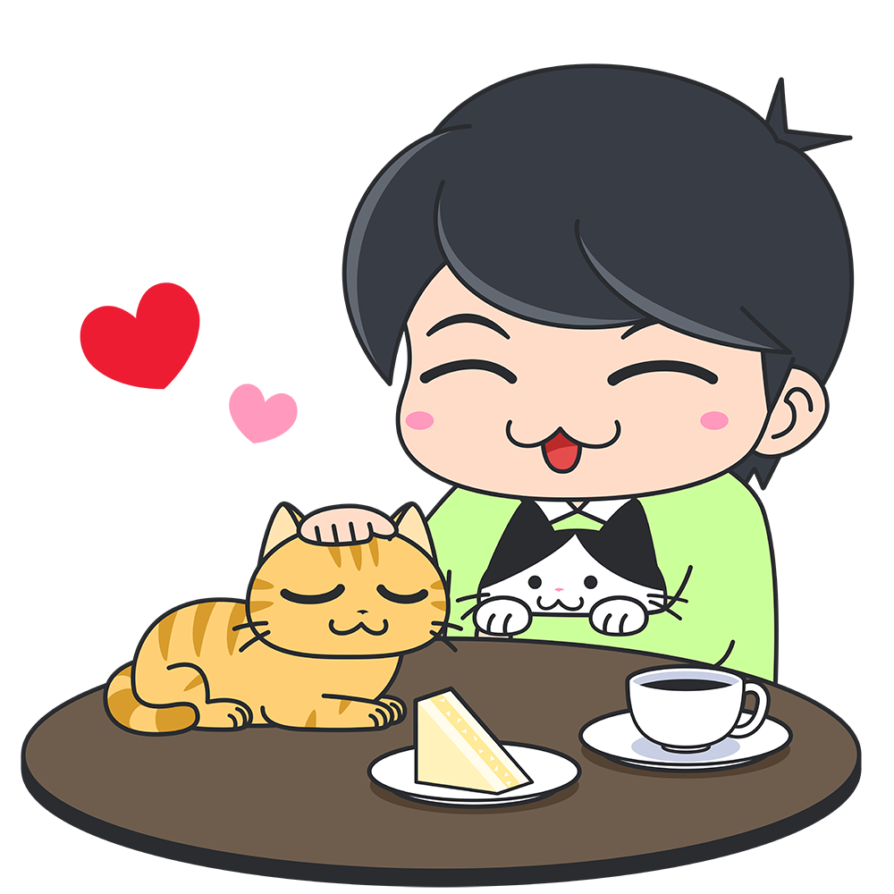 猫カフェで楽しむ男性