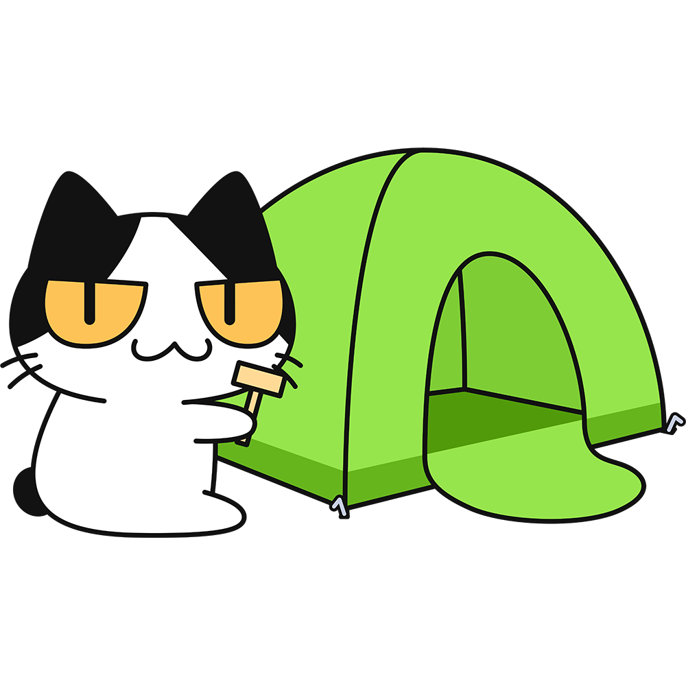 テントを立てる猫