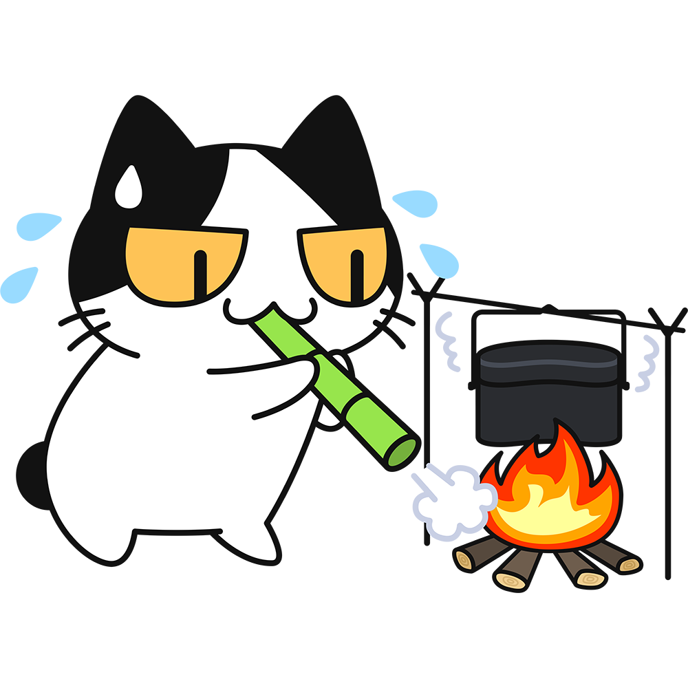 飯盒で米を炊く猫