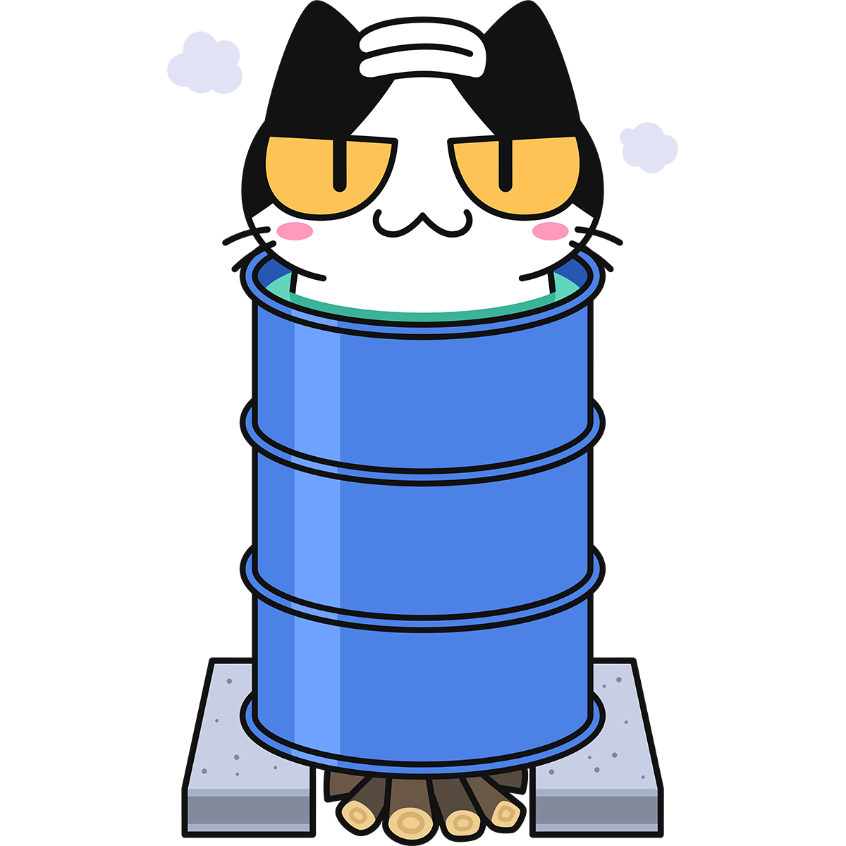 ドラム缶風呂に入る猫