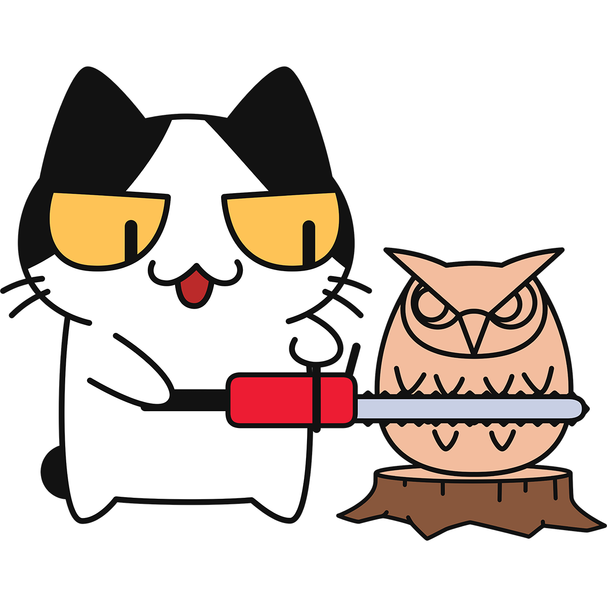 チェーンソーアートをする猫