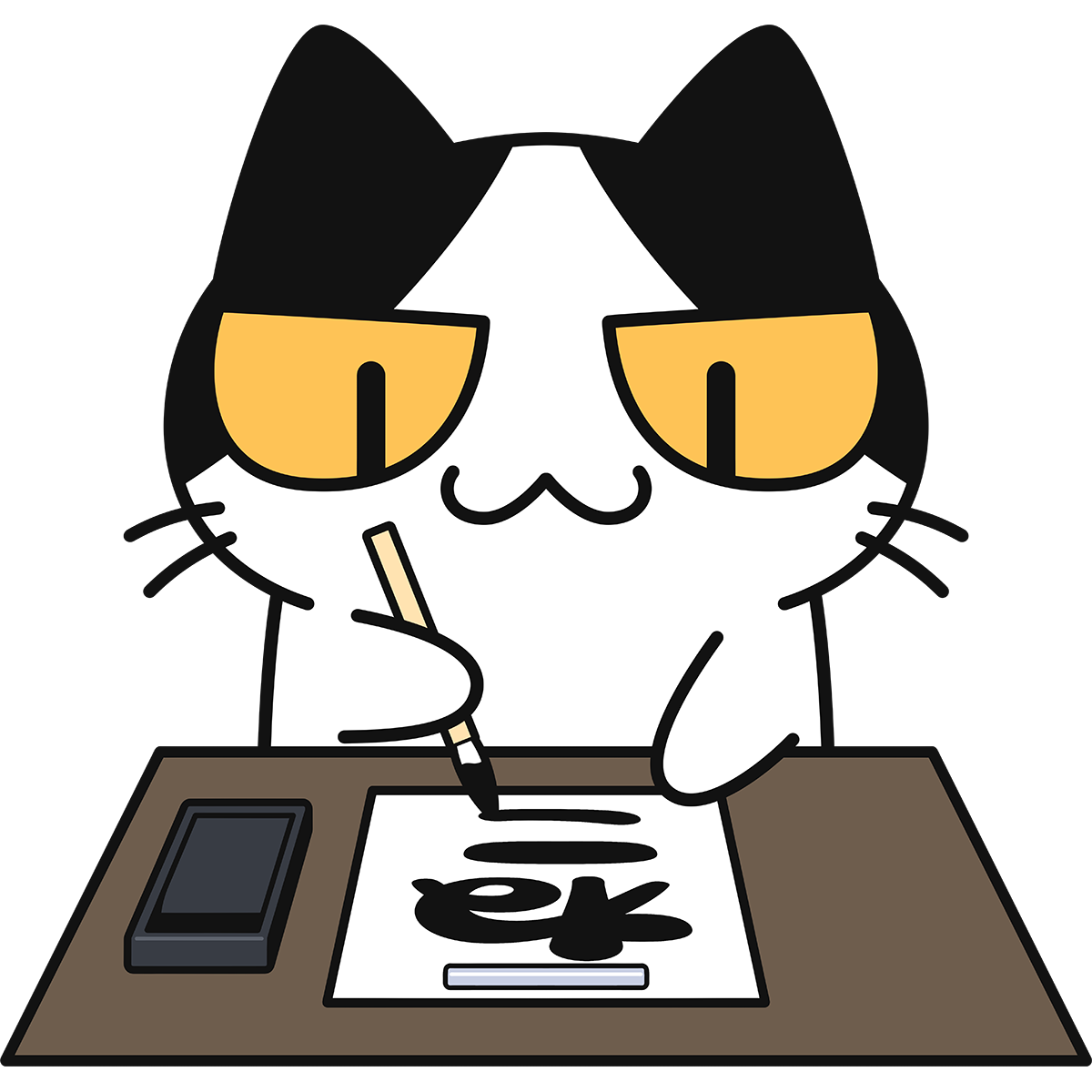 書道をする猫